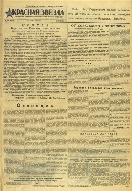 Газета «Красная Звезда» №106 от 08 мая 1945 года (страница 1)