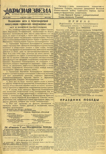 Газета «Красная Звезда» от 9 мая 1945 года