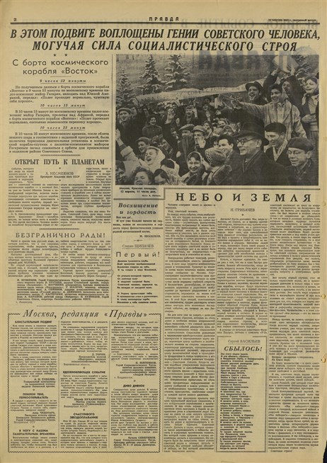 Газета «Правда» от 12 апреля 1961 года Экстренный выпуск (страница 2)