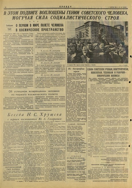 Газета «Правда» от 13 апреля 1961 года (страница 2)