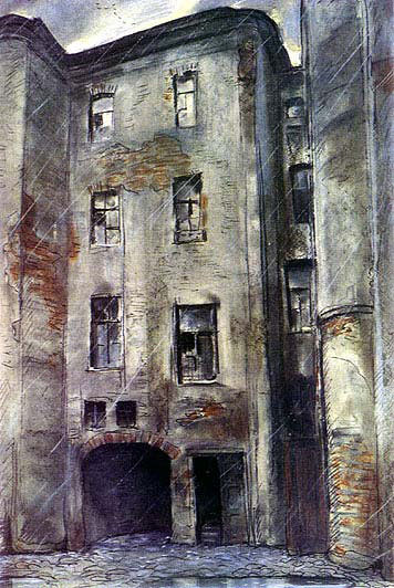 Иллюстрация к повести «Записки из подполья». Двор. Художник И. Глазунов. 1983.