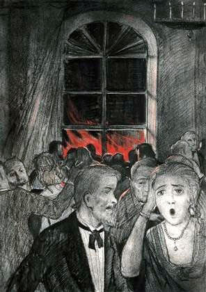 Иллюстрация к роману «Бесы». Переполох на балу. Художник И. Глазунов.