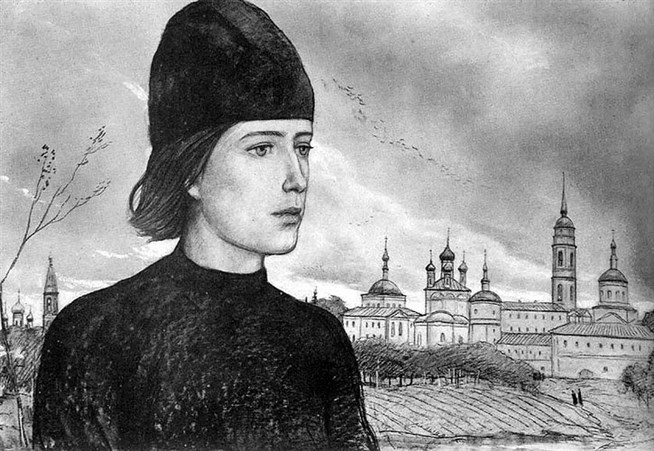 Иллюстрация к роману «Братья Карамазовы». Алеша. Художник И. Глазунов. 1983.