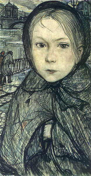 Иллюстрация к роману «Униженные и оскорбленные». Нелли. Художник И. Глазунов. 1982.