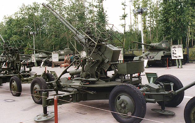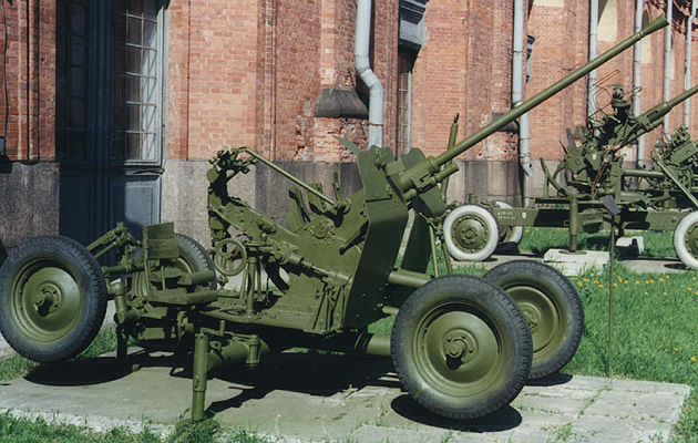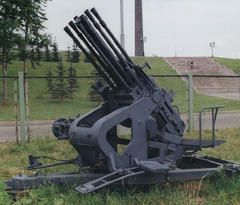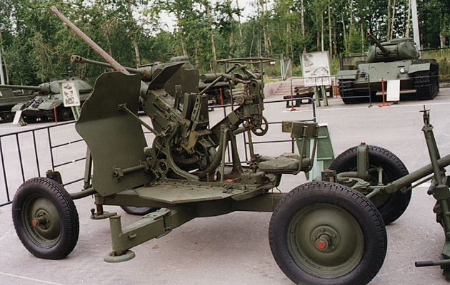 Советская 37-мм зенитная спаренная артиллерийская автоматическая установка В-47 периода Великой Отечественной войны.