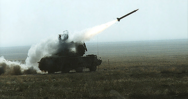 Пуск ракеты зенитно-ракетного комплекса «Оса-АКМ».