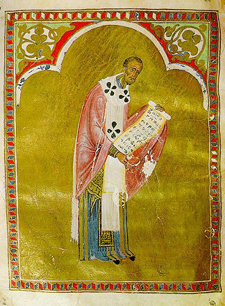 Святой Иоанн Златоуст, миниатюра из рукописи 13 в.