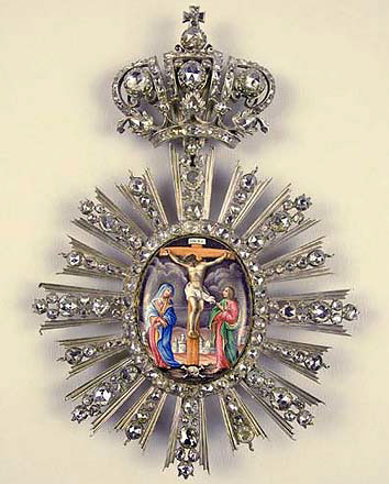 Панагия «Распятие с предстоящими». Санкт-Петербург, 1725. Серебро, эмаль, бриллианты.