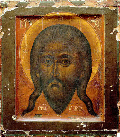 «Спас Нерукотворный» митрополита Алексия. Образ был принесен в 1354-55 гг. митрополитом Алексием из Византии и вложен им в Спасо-Андроников монастырь при его основании (ок. 1357-1372 гг.). В 17-19 вв. образ был переписан, но сохранил свою иконографию, редкую для византийской живописи 14 в.: с узким ликом, остроугольной клиновидной бородой и двумя симметричными прядями волос. Византия, 14 в. (?); Москва, конец 17 (?)-19 вв.