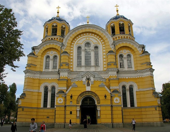 Владимирский собор в Киеве был построен в 1862-1896 годах и посвящен крестителю Руси князю Владимиру. Собор в старовизантийском стиле был создан архитектором А.В. Беретти и расписан группой художников под руководством А.В. Прахова, среди которых были В.М. Васнецов, М.А. Врубель, М.В. Нестеров.