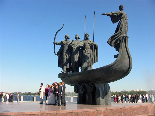 Киев. Памятник Кию, Хориву, Щеку и Лебеди — основателям города. 1982 год.