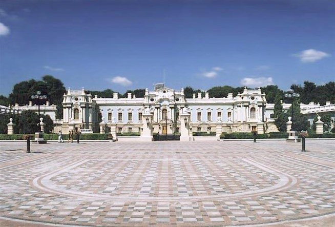 Киев. Мариинский дворец. 1755 г. Построен по проекту архитектора Б. Расстрелли при участии И. Мичурина. В 19 в. был резиденцией генерал-губернатора. В 1870 г. здание в первый раз реставрировалось, в конце 1990-х гг. отреставрировано вновь.