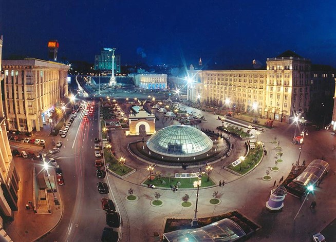 Киев. Вечерняя панорама площади Независимости (майдана Незалежности).