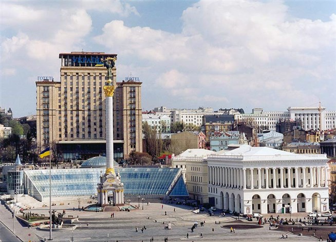 Киев. Площадь Независимости (Майдан Незалежности, бывшая Октябрьской революции), в центре колонна, которую венчает скульптура Оранта Украины.