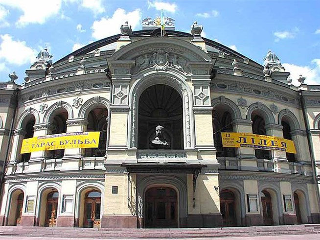 Киев. Национальный театр оперы и балета (Национальная опера). В советское время назывался Киевский театр оперы и балета им. Т. Г. Шевченко. Здание построено в 1901 г. по проекту архитектора В. Шретера.