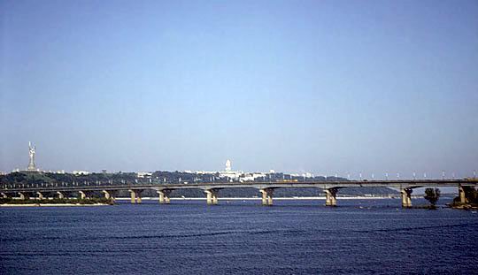 Киев. Вид на Днепр и мост им. Е. О. Патона (цельносварной) и правый берег Днепра.