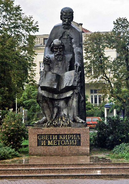 София. Памятник Кириллу и Мефодию перед зданием библиотеки, названной в их честь.