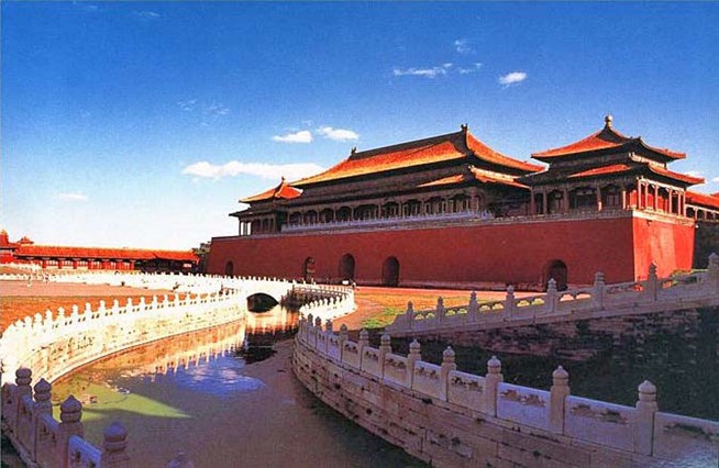 Запретный город. Золотой мост, справа ворота Зала высшей гармонии.