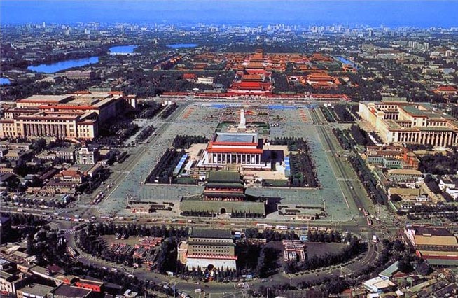 Пекин. Главная площадь города Тяньаньмынь (Тяньаньмэнь) с высоты птичьего полета.