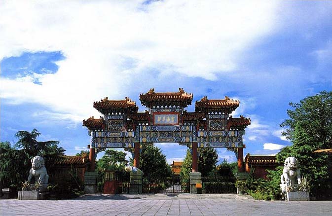 Пекин. Орнаментально украшенный главный вход в монастырь Юнхэгун.