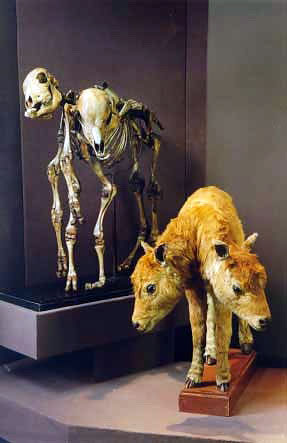 Чучело двухголового теленка — экспонат тератологической коллекции музея.