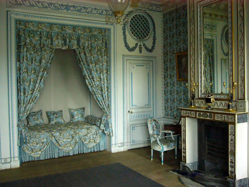 Вседневная опочивальня. Предназначалась для отдыха и личных бесед, сохранила два варианта художественного оформления интерьера: более ранний — нарядный полихромный и строгий бело-голубой, типичный для цветового решения стиля классицизм. Справа от альковной ниши расположен камин с мраморными вставками, расписанными французскими мастерами в «помпеянском стиле». Камерные портреты семьи Шереметевых подчеркивают интимный характер интерьера. Знаменитый портрет калмычки Анны Николаевны, воспитанницы хозяйки дома — одно из самых поэтичных произведений Ивана Петровича Аргунова, талантливого представителя семьи крепостных художников и архитекторов, принадлежавшей графам Шереметевым.