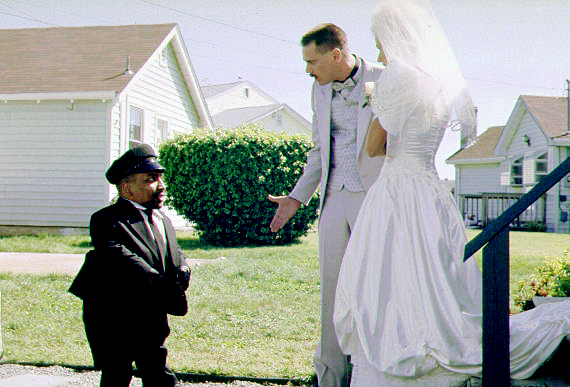 Джим Керри и Ян Макнейс в фильме "Эйс Вентура: Розыск домашних животных". 1994 год. Архив редакции "Видео-АСС".
