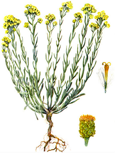 Песчаный бессмертник или песчаный цмин (hilichrysum arenarium). Рисунок.
