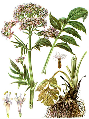 Лекарственная валериана или маун, мяун, кошачья трава (valeriana officinalis). Рисунок.