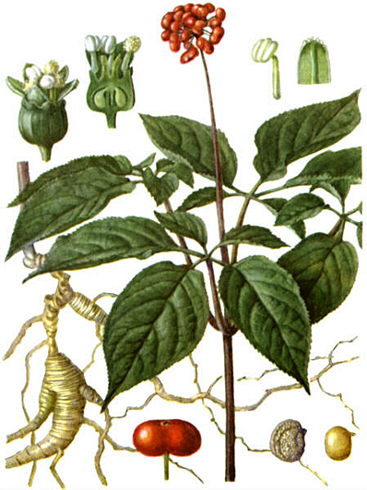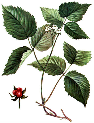 Обыкновенный женьшень (panax ginseng). Рисунок.