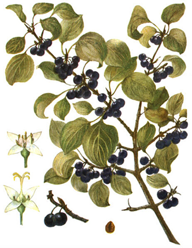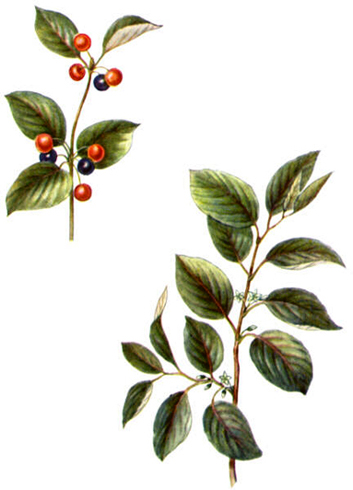 Жостер или крушина слабительная (rhamnus cathartica). Рисунок.