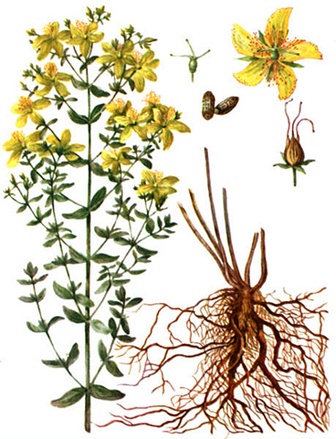 Продырявленный зверобой, или обыкновенный зверобой (hypericum perforatum). Рисунок.