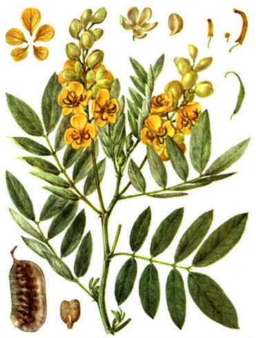 Остролистная кассия или остролистная сенна (cassia acutifolia). Рисунок.