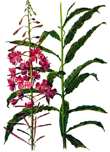 Узколистный кипрей или иван-чай (копорский чай, chamerion angustifilium). Рисунок.