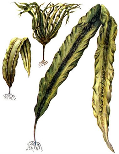 Сахаристая ламинария или морская капуста (laminaria saccharina). Рисунок.