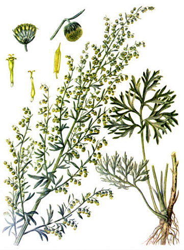 Обыкновенная полынь или чернобыл (чернобыльник; artemisia vulgarus). Рисунок.