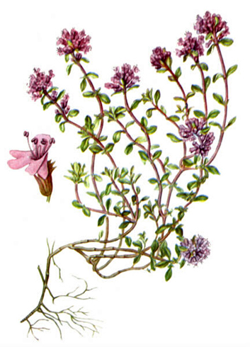 Ползучий тимьян или чабрец (богородская трава, thymus serpyllum). Рисунок.