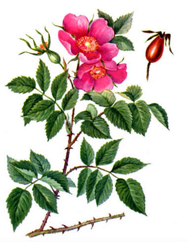 Коричный шиповник или дикая роза (rosa cinnamomeal). Рисунок.