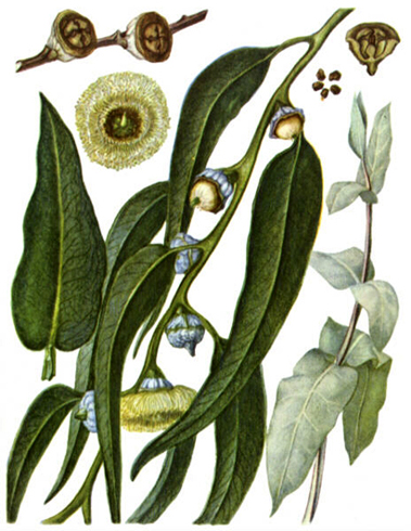Шариковый эвкалипт или круглый эвкалипт (eucalyptus clobulus). Рисунок.