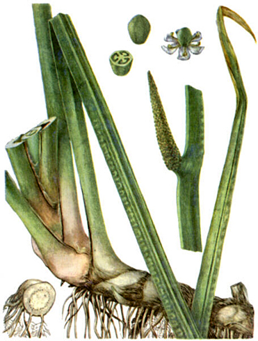 Болотный аир, или обыкновенный аир (ирный корень, acorus calamus). Рисунок.