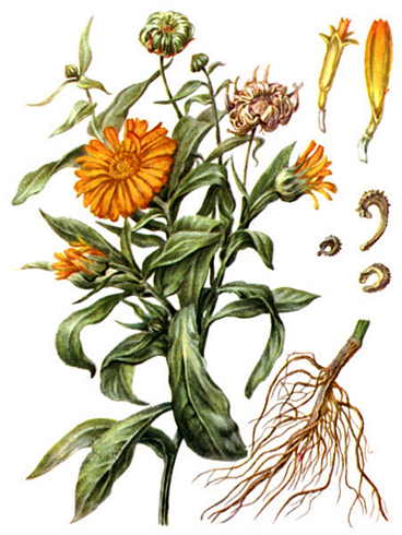 Лекарственная календула или ноготки (calendula officinalis). Рисунок.