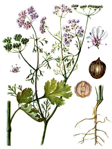 Посевной кориандр или кишнец (coriandrum sativum). Рисунок.