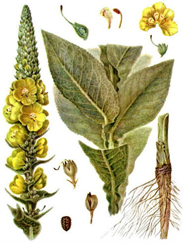 Скипетровидный коровяк или высокий коровяк (verbascum thapsiforme). Рисунок.