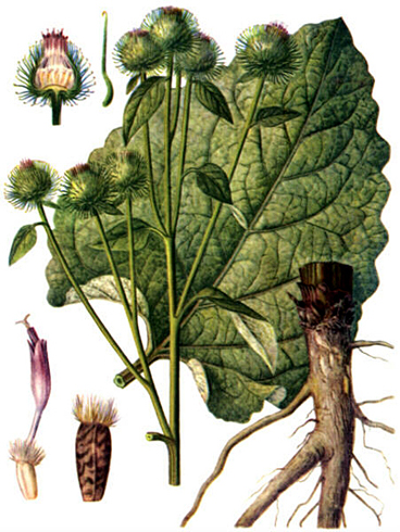 Большой лопух или репейник (arctium lappa). Рисунок.