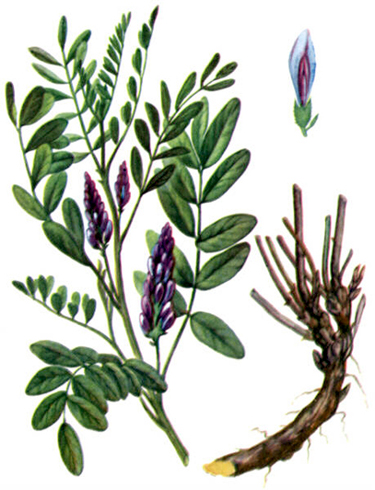 Голая солодка или гладкая солодка (лакрица, clycyrrhiza glabra). Рисунок.