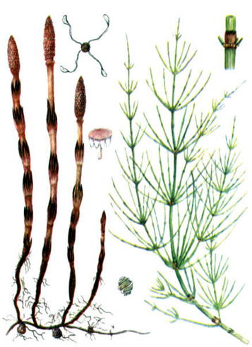 Полевой хвощ или обыкновенный хвощ (eguisetum arvense). Рисунок.