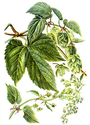 Обыкновенный хмель (humulus lupulus). Рисунок.