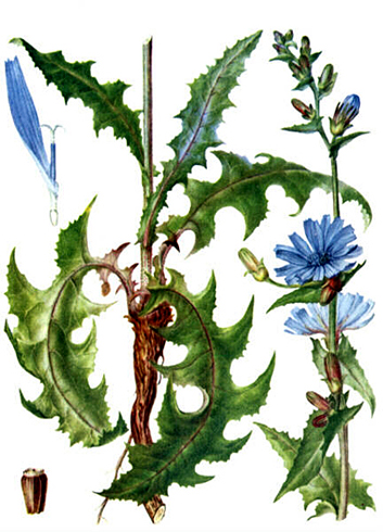 Обыкновенный цикорий (cichorium intybus). Рисунок.