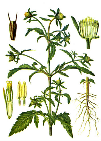 Трехраздельная череда или золотушная трава (bidens tripartite). Рисунок.