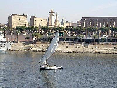 Луксор. Вид на город со стороны Нила. Иллюстрация предоставлена туристическим отделом Посольства Египта.
